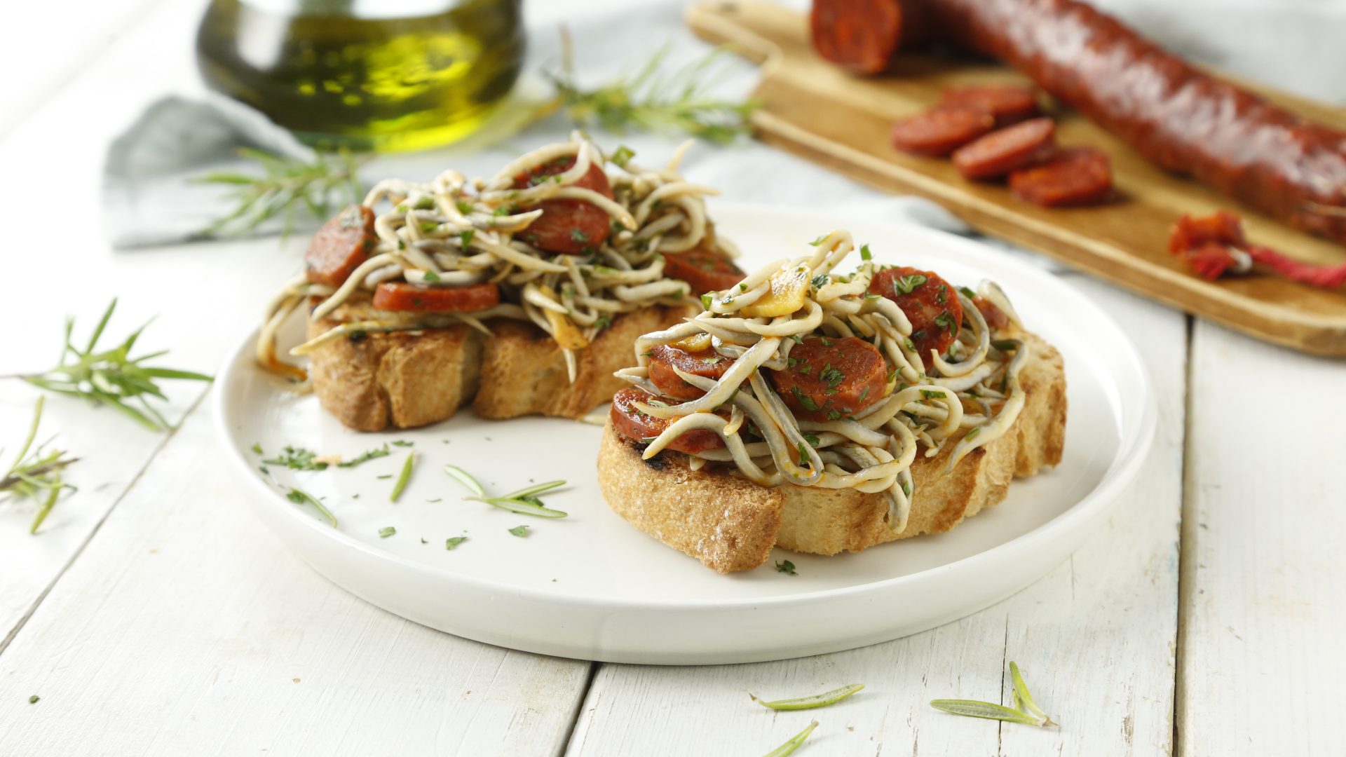 And there are perfect pairings that never fail when presented together. Like these delicious gulas with chorizo. Flavors of land and sea for an informal snack or as a starter for a special lunch or dinner.