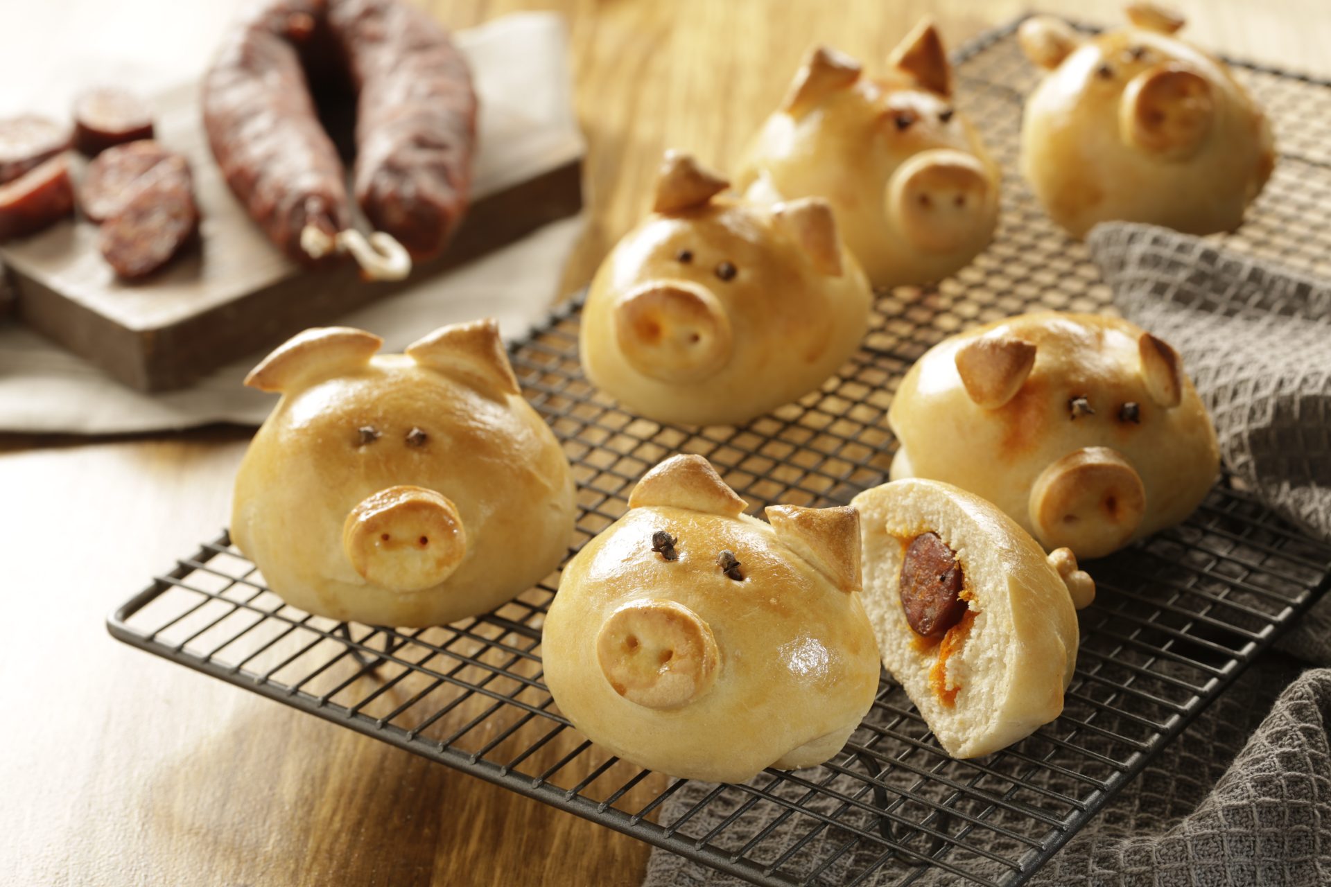 Para quien considere que el arte de cocinar es aburrido, os proponemos esta simpática receta inspirada directamente en los bollos preñaos asturianos. La esencia es la misma: una masa de pan rellena de chorizo. Solo que esta vez, en lugar de darle su forma tradicional de bollo, la vamos a disfrazar de simpáticos y deliciosos cerditos.